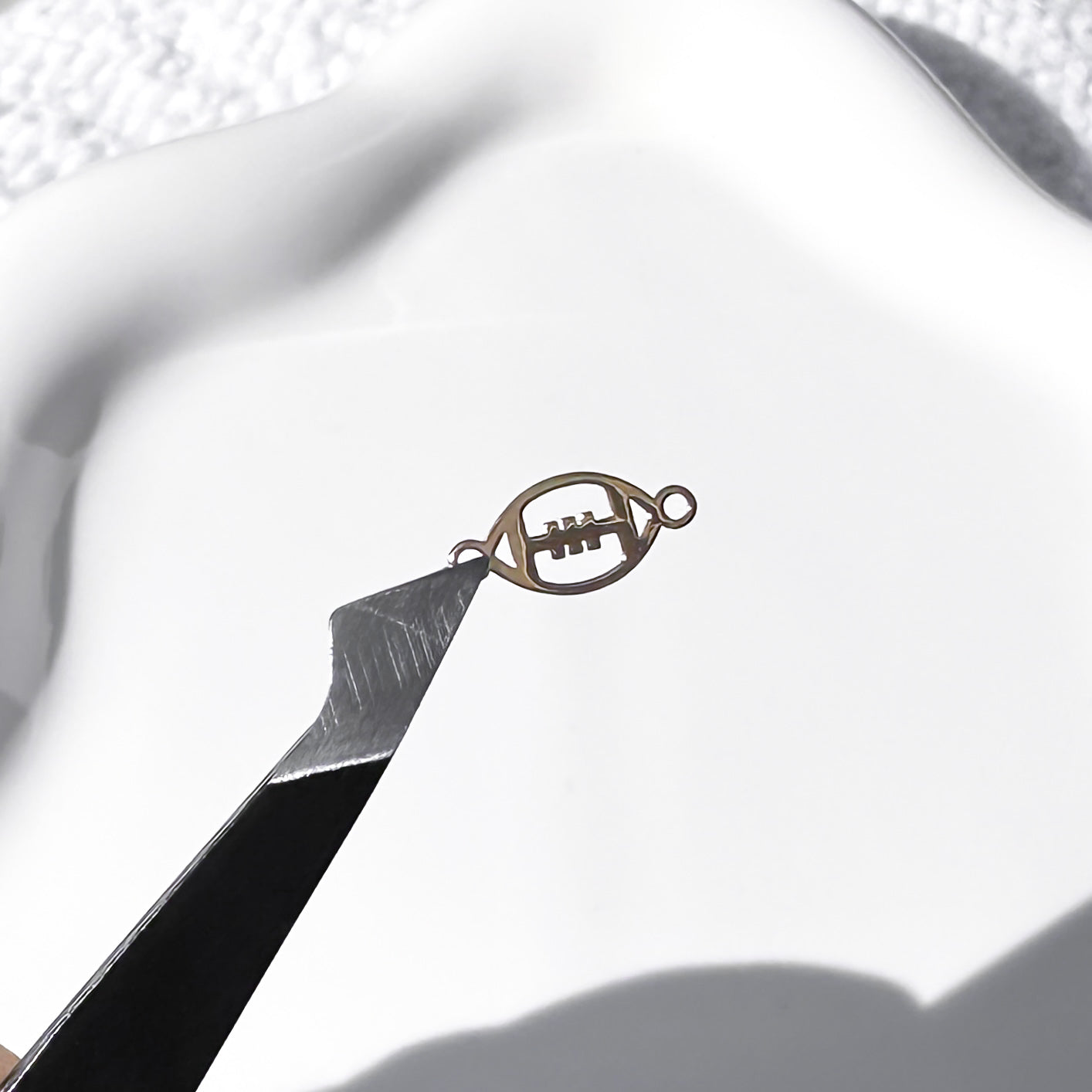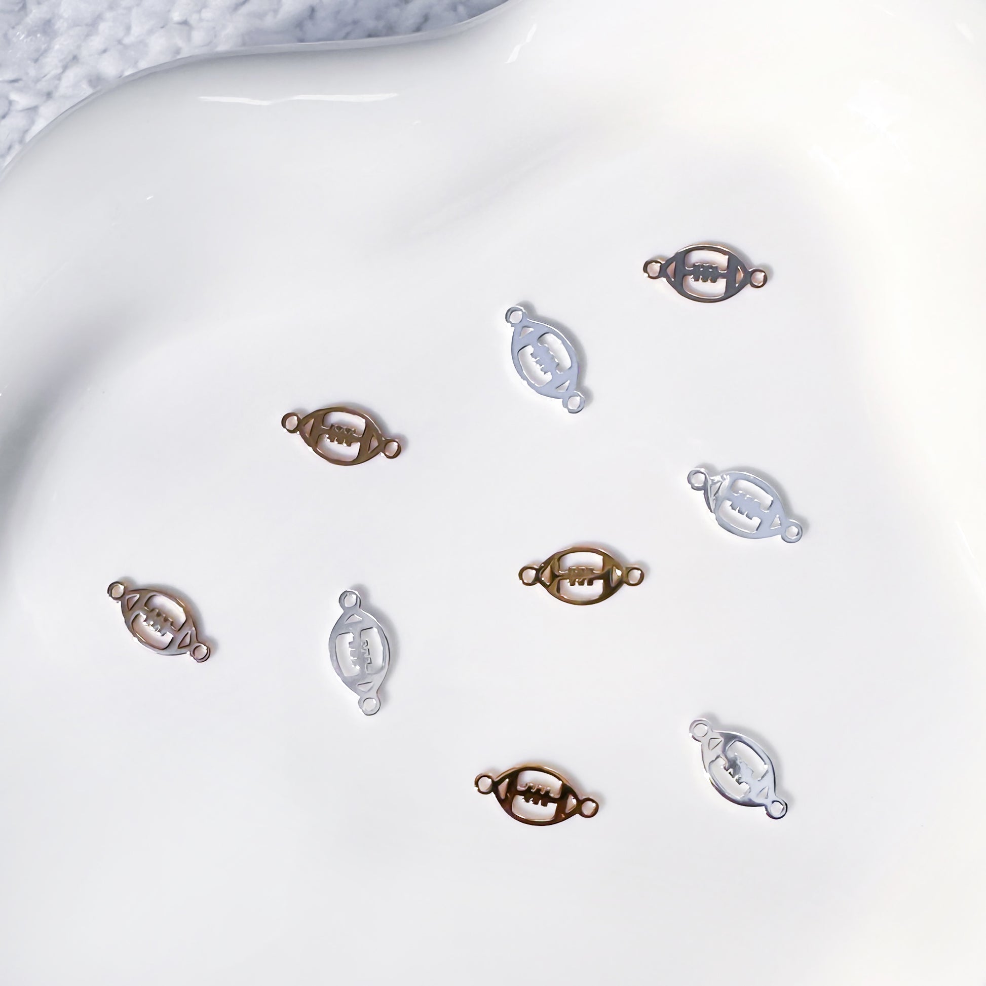 High-quality football connectors available in 14K gold filled or sterling silver, perfect for permanent jewelry and custom jewelry making, these connectors are the perfect delicate addition to bracelets, anklets, and necklaces. This mini charm is durable and a great choice for football fans, game-day jewelry, team gifts, and everyday wear. Ideal for permanent jewelry artists and handmade designers looking to add a fun, athletic touch to their creations.