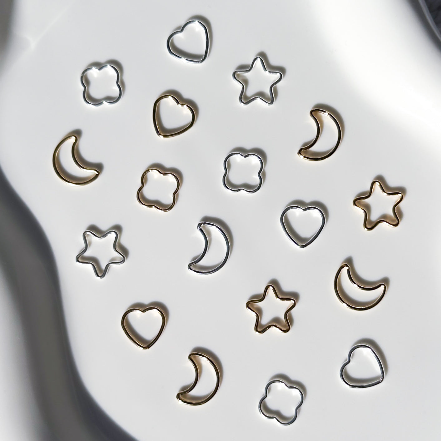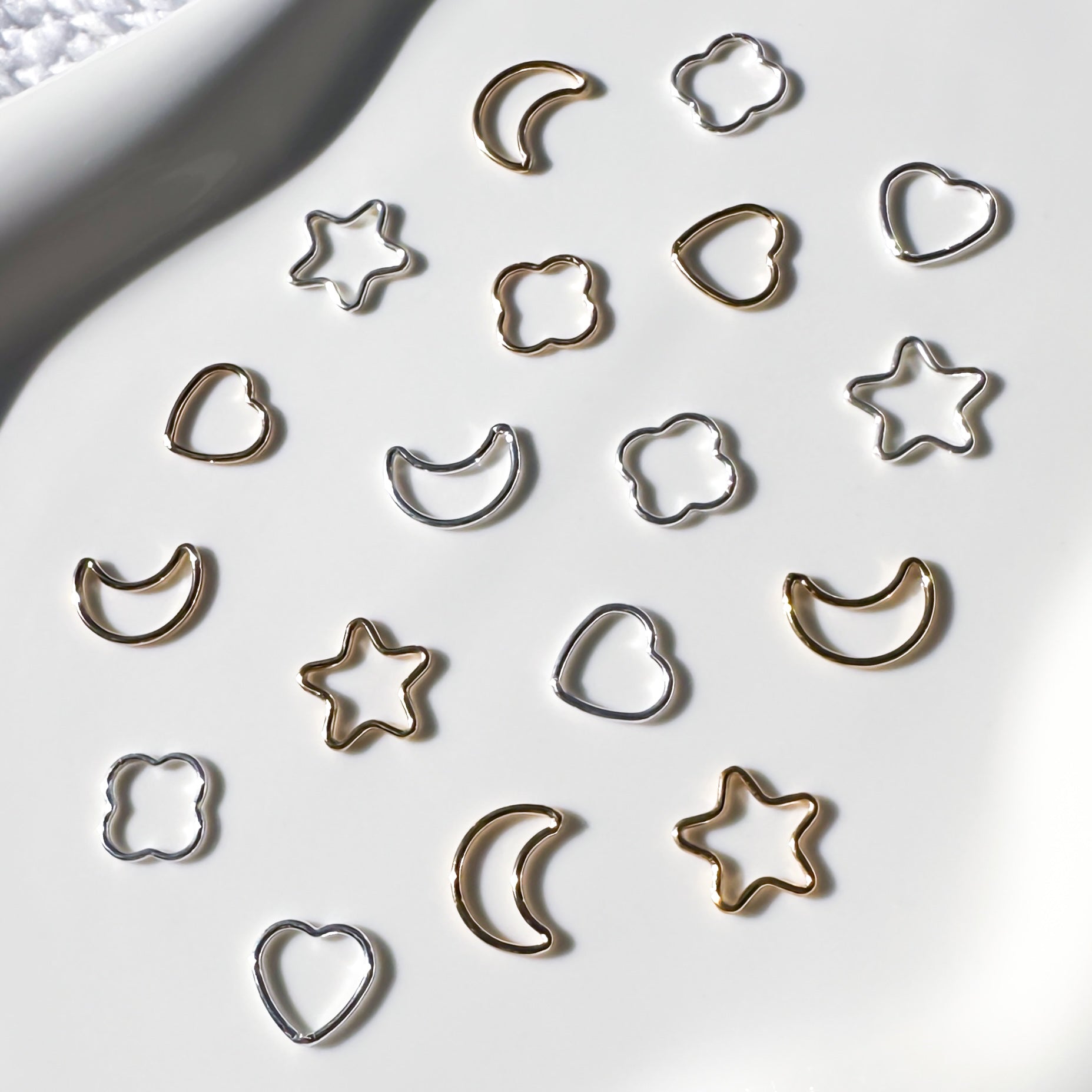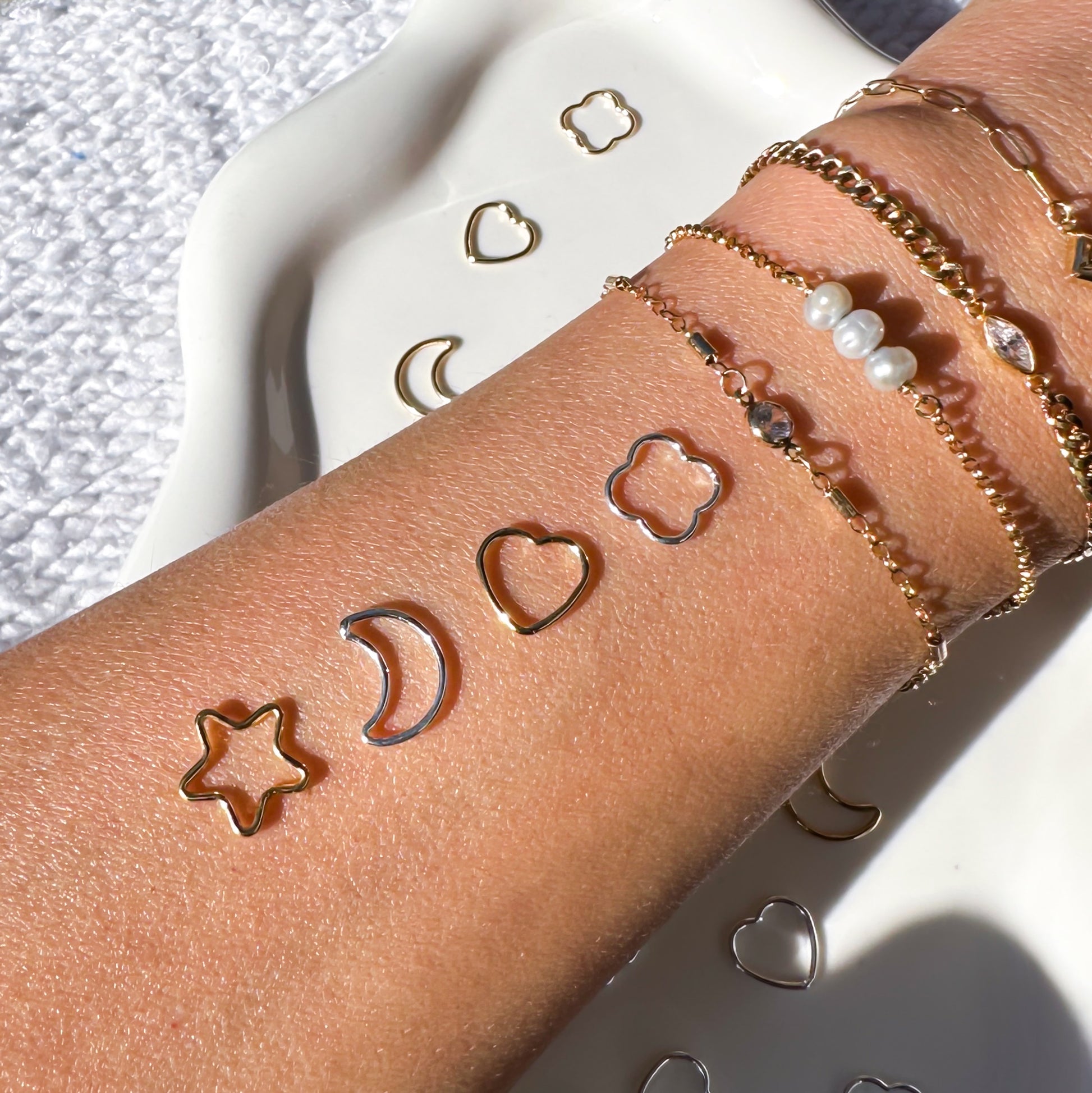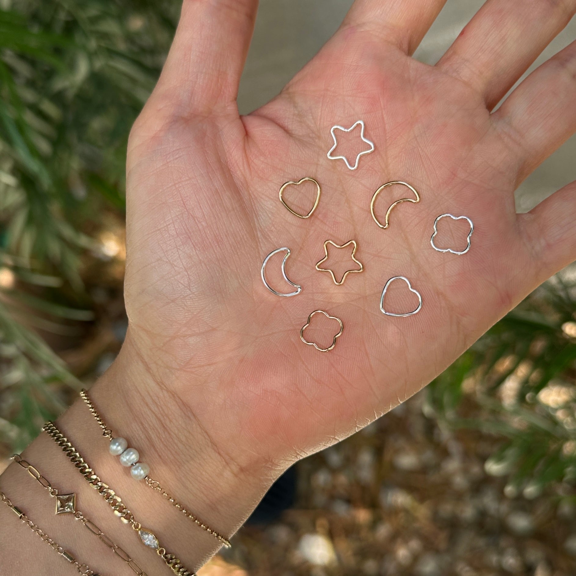 Add a touch of charm and meaning to your permanent jewelry creations with these beautiful Open Style Connectors. Available in Heart, Star, Moon, and Clover designs, each piece is crafted from 14k Gold Filled or 925 Sterling Silver for lasting shine and durability — a beautiful addition to bracelets, anklets, necklaces, or unique jewelry designs.