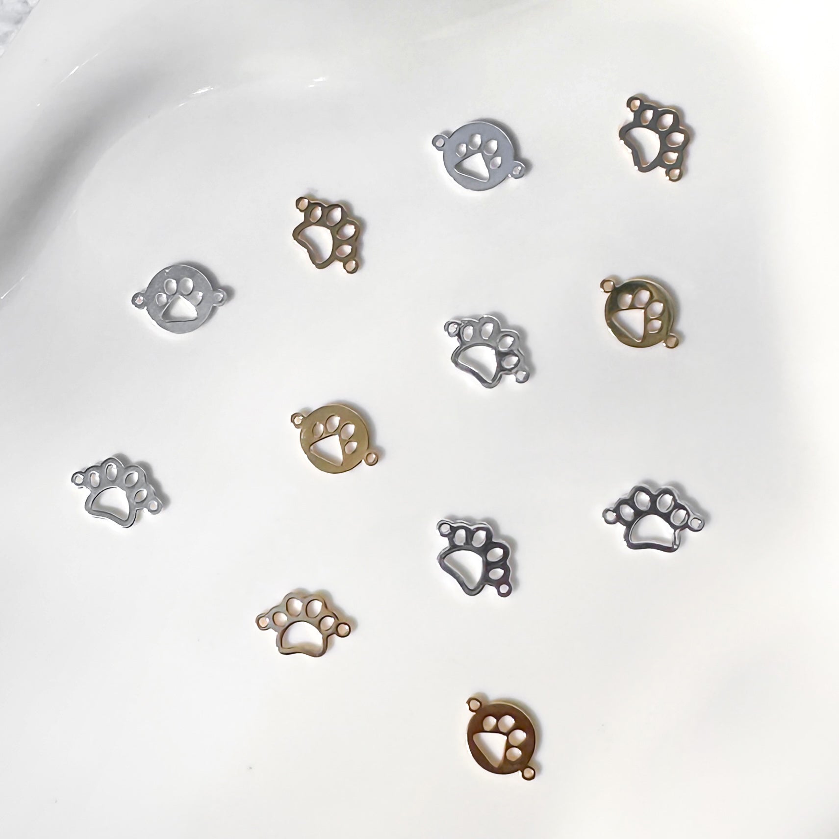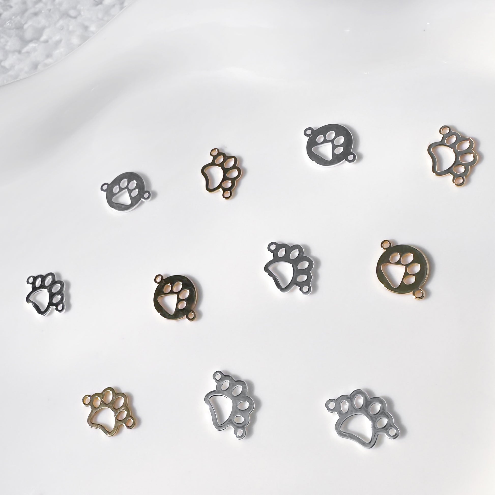 Add a touch of charm to your permanent jewelry creations with these 14k gold filled and sterling silver paw connectors. Perfect for pet lovers, these delicate paw-shaped connectors are expertly crafted with precision and durability in mind. Designed for permanent jewelry, these connectors are an ideal addition to bracelets, anklets, and necklaces.
