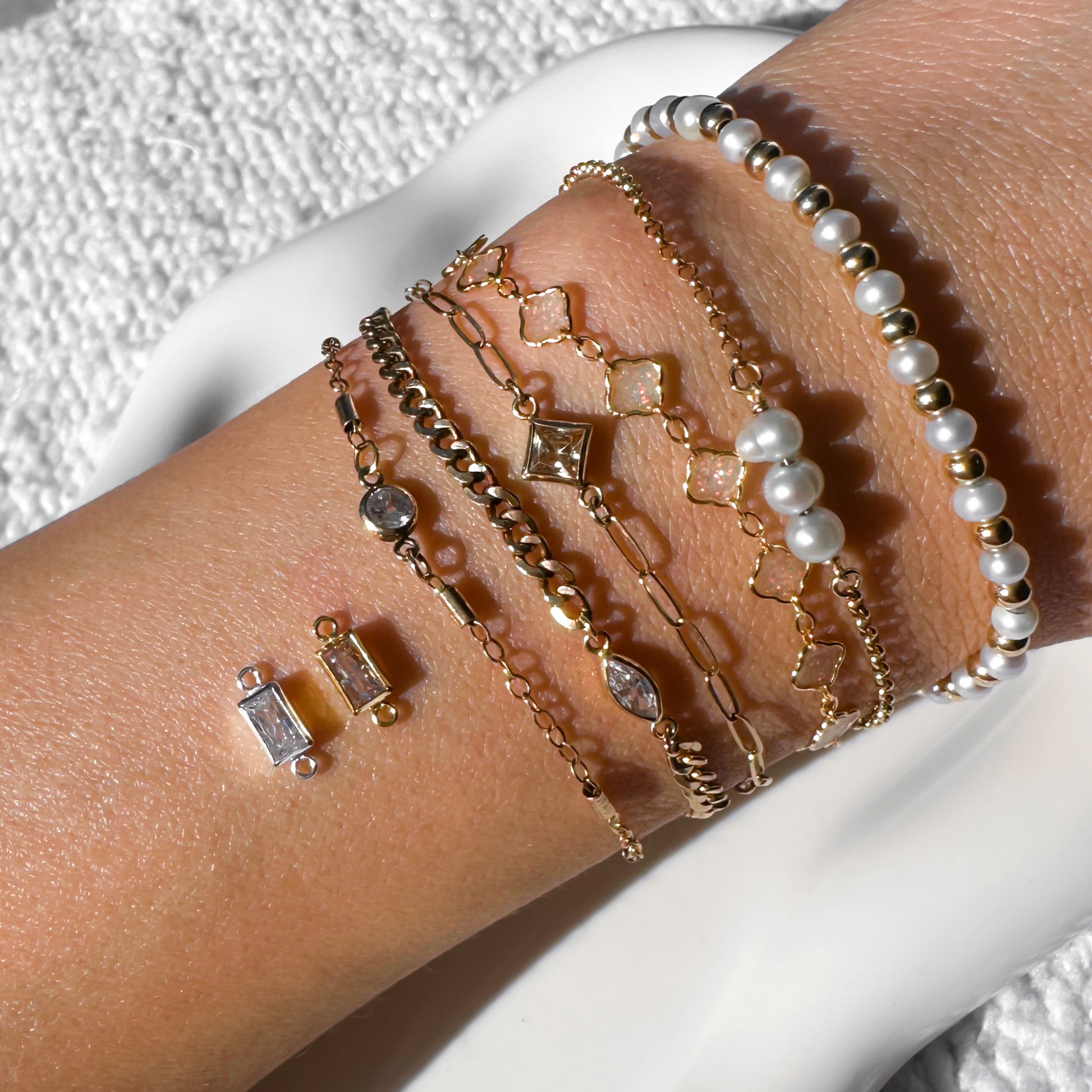 Personalize your permanent jewelry with our elegant rectangle-shaped birthstone connectors. Each piece features a beautifully detailed zircon stone, perfect for adding a sparkle to bracelets, anklets, and necklaces. Crafted from high-quality 14k gold-filled and sterling silver materials, these connectors allow for a meaningful, customized design that reflects the wearer’s birth month or favorite color.